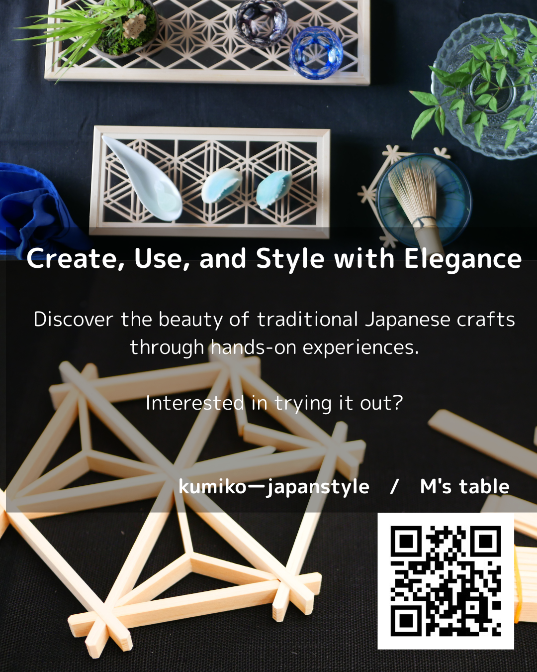 NHKにも取材された伝統工芸 鹿沼組子を使って、家庭でも楽しめる和のアフタヌーンティー&お抹茶のひとときを、伝統工芸と伝統文化を気軽に楽しんでいただく時間&レッスンです